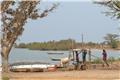 After we keft the city of Dakar behind, the first stop of the day was a fishing village; my notes say it was named "Keur" but I can't find any information online to confirm that this is correct. As we drove through the town, the minibuses had to navigate some really small streets. We got out of the bus and walked toward the beach, stopping to see an area with piles of fish that had already been harvested.